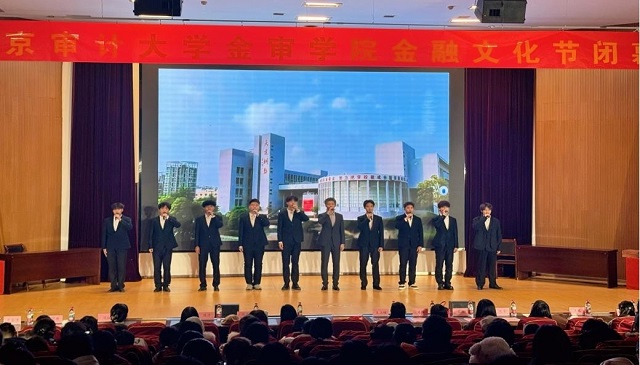 由学院学生自编自演的话剧《红色金融映初心》将现场气氛推向高潮。作品以中国共产党百年奋斗历程为背景,通过“建党”“工人运动”等历史片段,生动呈现了党领导下金融事业发展的初心与使命。演出情感真挚、构思巧妙,在专业教育与课程思政融合方面作出了创新示范,赢得全场热烈共鸣。
