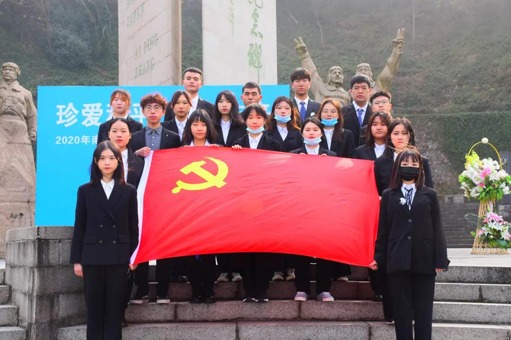 共产主义迎大势,黄斧金镰显神威。金融学院学子带着党旗祭英魂,行志愿,每一次出行,都让鲜血般的红色漫卷足迹,播撒炙热情怀。横刀跃马,定不负党员名。