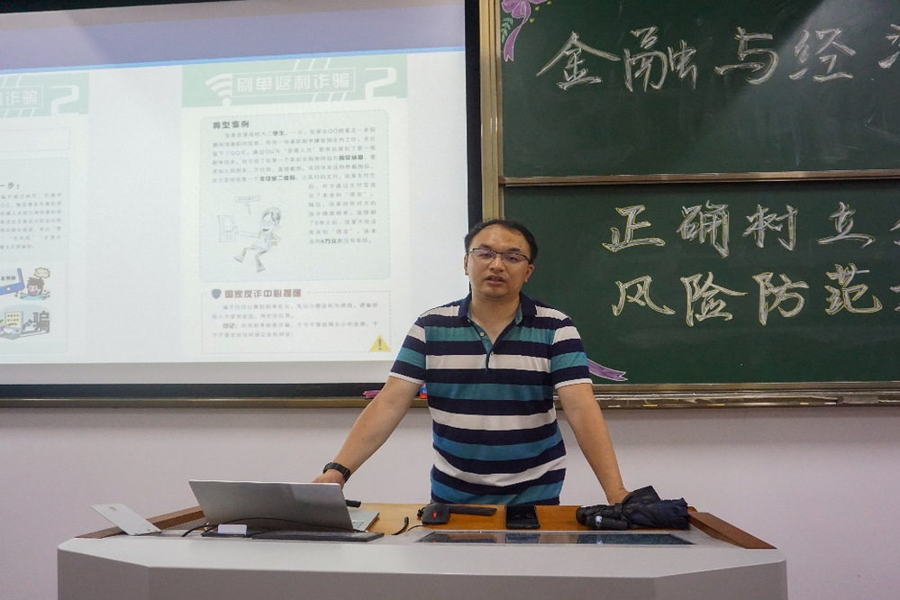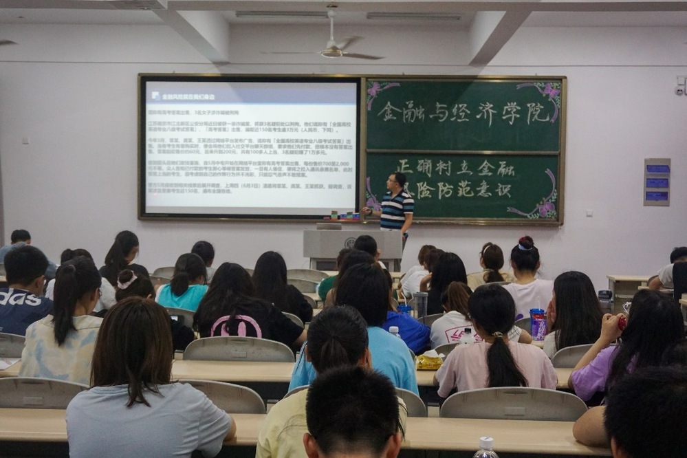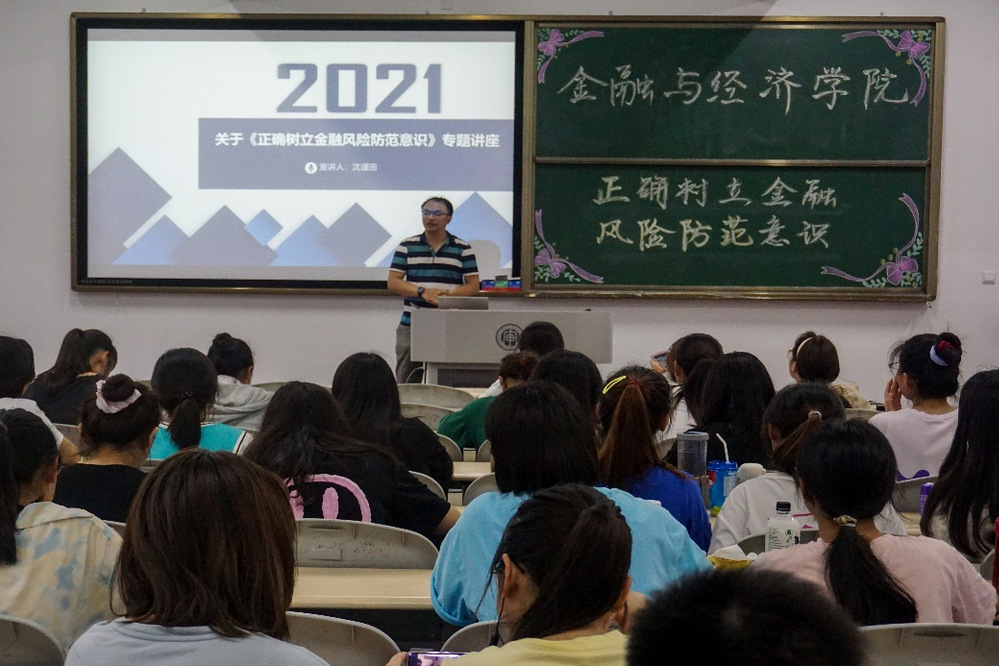 讲座从“金融风险就在我们身边”、“大学生常见的金融风险”、“案例分享与分析”、“大学生如何预防金融风险”这四个方面展开讲述。