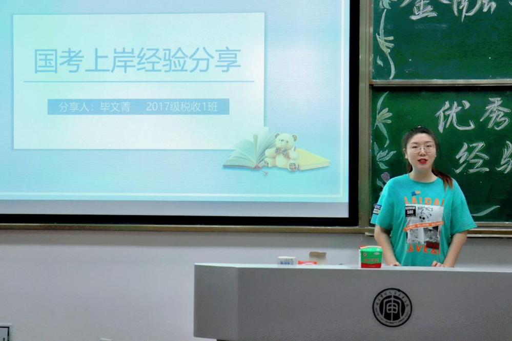 考入国家税务局的毕文菁学姐,更是为想要考取公务员的学弟学妹们作出了一个极大的榜样!毕学姐在分享会时说到,自己是从大三开始慢慢调整进入考公的状态,她不建议同学们将自己的战线拉得太长,考前一年、几月投入状态,时间都绰绰有余。
