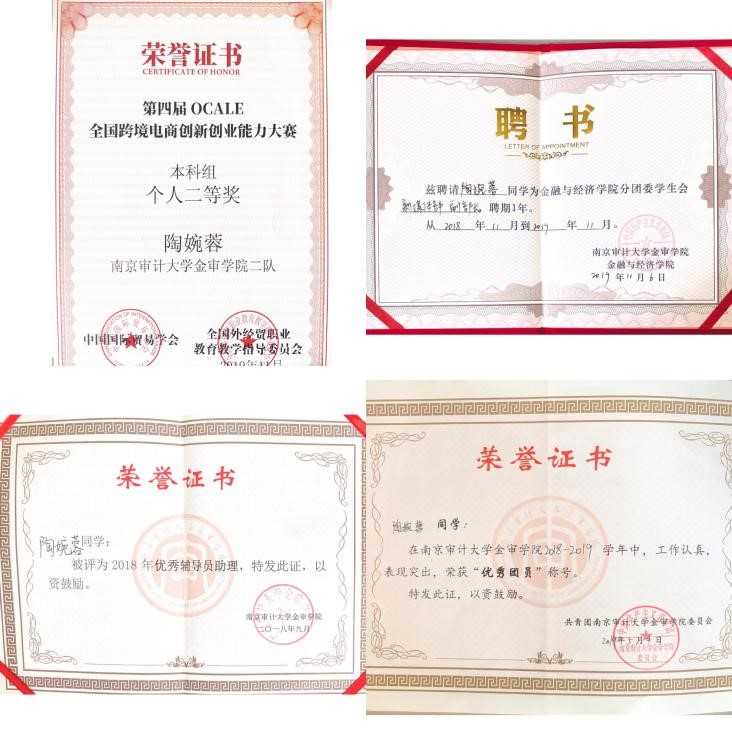 陶婉蓉,中共党员,williamhill英国中文2017级国贸2班,现已考取广东财经大学企业管理专业营销管理研究生。已通过英语四、六级和江苏省计算机二级。在校期间,担任班级副班长、学生会新媒体部副部长和手语社志工部部长。曾获得过“优秀辅导员助理”、连续两年获得“三等奖学金”、2019年荣获“第四届OCALE全国跨境电商创新创业大赛”团体以及个人二等奖。多次获得优秀团员、五德五爱先进个人、社会工作先进个人等荣誉。