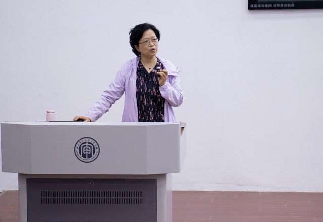 蒋志芬教授以“大学新阶段”引出话题:“我相信现在这里肯定卧虎藏龙,同学们都胸怀着远大志向和抱负,进入人生的新阶段。”新阶段,新平台,也意味着人生会遇到新的挑战。蒋教授鼓励同学们面对新挑战要奋勇直前,努力坚持,才能成就更好的自己。