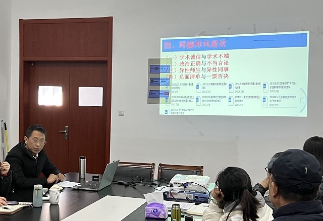 会后,蔡则祥院长将师德师风建设、职称评审、学校科研奖励、工资晋档、二级学院科研奖励办法等相关文件和材料提供给全体教师进行学习。