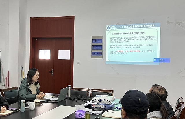 会议第三项议程,由于璐书记对思政、学工和安全工作进行总结。在思想教育方面,于书记提出加强师德师风建设必须提高思想政治素养、培养爱岗敬业的精神、树立为人师表意识;在学生工作方面,以人才培养为中心,狠抓学风和学习,继续推进精准助学工作,积极承担教学科研,指导学生开展科研,第一课堂和第二课堂互相融合,增强学生综合素养,坚持做好就业指导工作;在安全工作方面,要按要求做好疫情防控工作,预防电信网络诈骗,注意财产、消防等安全问题。