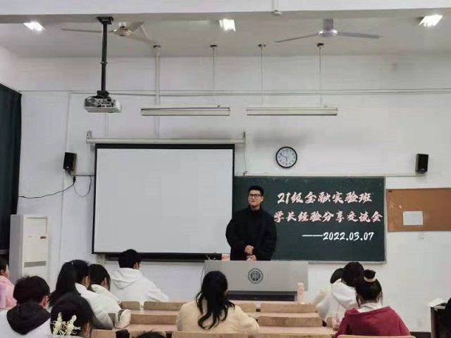 为弘扬“老带新”的优秀传统,增强同学们对实验班新生活的适应能力。2022年3月7日晚,由2021级金融实验班组织的学长经验分享交流会在B中104教室举行,辅导员老师和特邀嘉宾2020级金融实验班部分学生干部参加了此次交流会。