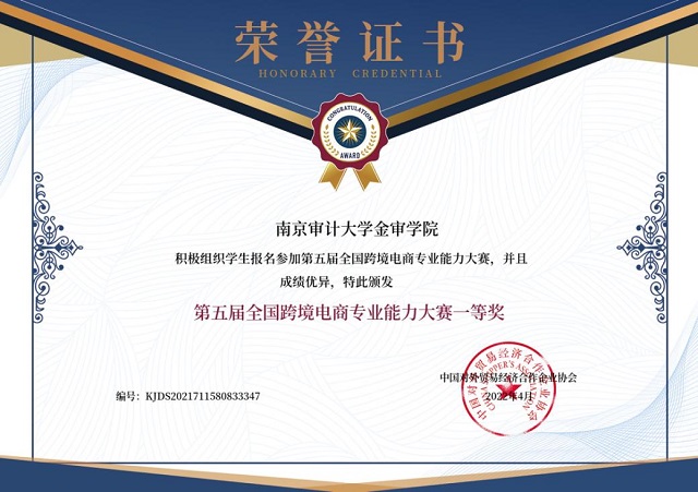 由中国对外贸易经济合作企业协会主办的第五届全国跨境电商专业能力竞赛于2022年3月27日圆满结束。我院由国际经济与贸易专业的于立佳、张一婕、娄琛、辛婉婷4名同学组成的队伍,在孙忠悦老师、谢海燕老师、韦晨老师及王玲侠老师的指导下,从491支参赛队伍中脱颖而出,荣获运营技能一等奖,同时金审学院获得第五届全国跨境电商专业能力大赛一等奖。