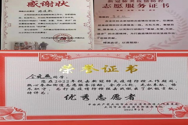 在参与疫情志愿服务的过程中,我的任务是负责引导居民有序排队进入采样区。三轮的疫情防控志愿工作,让我深刻地体会到了医护人员以及其他工作人员的辛苦。即使在寒冷的冬天,大家都在认真着、努力着,不敢有一丝懈怠。病毒可以被隔离,但是温暖不会,小区的居民们不仅非常配合我们的工作,而且在排队时会给我们说一句辛苦了,还会给我们送来暖身贴。我坚信,众志成城,战“疫”必胜,一切都会好起来的!