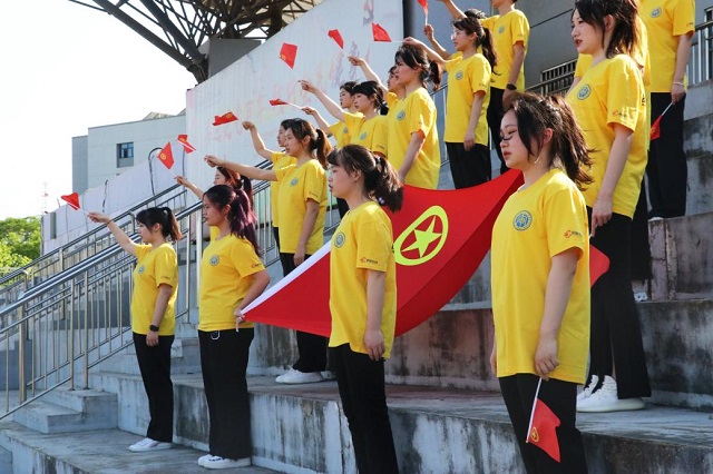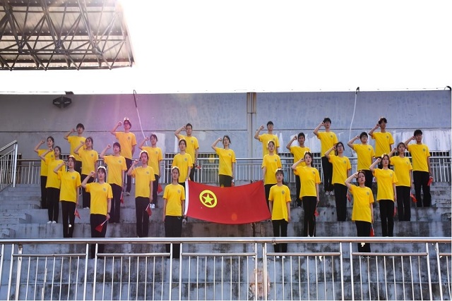 为号召广大青年继承和发扬革命先辈爱党爱国、砥砺奋进的伟大精神,团员青年在国旗下誓言铿锵:“我们生在红旗下,长在春风里,先辈夙愿在心,民族大任在肩。今天,我们庄严承诺,奋斗有我,让人民更加幸福,奋斗有我,让家园更加美好,奋斗有我,让祖国更加昌盛。愿以我辈之青春,复兴伟大之中华。奋斗正青春,青春献给党。请党放心,强国有我,请党放心,强国有我,请党放心,强国有我!”