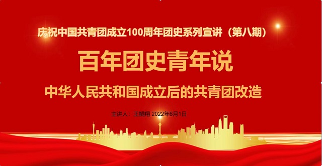 随着抗日战争、解放战争的胜利,国家建设迫切需要广大青年投身其中。作为青年人的先锋队伍,共青团在党的领导下进行了一系列改造。为引导青年团员了解这段历史,汲取历史经验,激发爱国热情,从而树立正确的政治思想,6月1日,我院继续开展由王鲲翔同学主讲的《百年团史青年说》第八期——中华人民共和国成立后的共青团改造。
