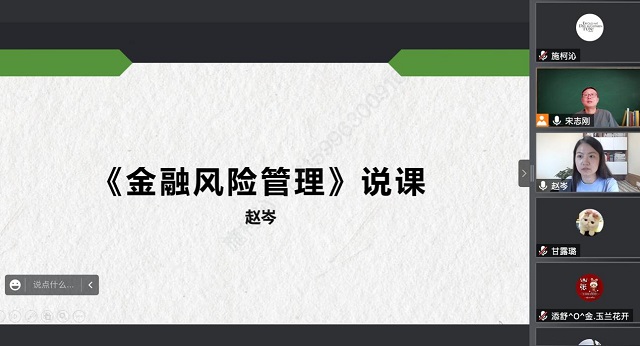 此外,保险教研室还开展了新开课开新课认证老师的在线试说课和教研室互评活动。在教研室主任宋志刚老师的组织下,赵岑和施懿文两位老师分别对《金融风险管理》《保险学》两门新课进行说课。其他老师分别从课时分配、平时成绩构成、课程参考材料更新等角度提出相关完善建议,以期帮助新开课和新开课的老师们更好地开展新学期工作,提高教学效率。
