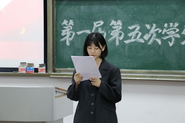 会议应到正式代表60人,实到正式代表58在庄严的国歌声中,本次学代会揭开了序幕。首先,聂老师为本次会议作开幕致辞,我院团学工作表示充分肯定,对我院团学组织为学校团委工作做出的积极贡献表示感谢,祝愿我团学工作蒸蒸日上,并预祝我院第一届第五次学生代表大会顺利召开。