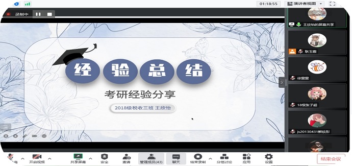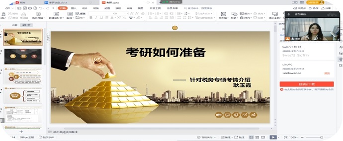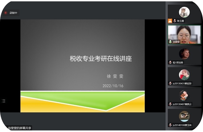 2022年10月16日晚7点,税收教研室的耿玉霞和徐雯雯两位老师为20、21和22级税收学专业的同学开展了一场内容丰富的考研专题讲座。