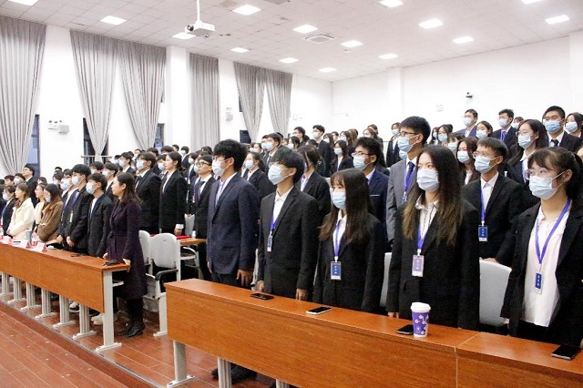 大会最后,全体成员奏唱共青团团歌,飞扬的歌声里流露出青春的激昂,彰显出我院学子踔厉奋发、松柏之志的精神风貌。