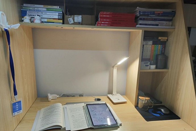 宿舍休息的地方,更是同学们学习的重要场所“一书一寝,四影随行;浓墨书香,伴梦伴眠。”在本次投稿作品中很多同学的书桌摆满学习资料和课外阅读书缓缓的书香,为同学们的青春添上了刹那韶华,瞬间春光。正所谓书山有路勤为径学海无涯苦作舟如此温馨的寝室我们更要拾起时间碎片不懈怠学习不负青春