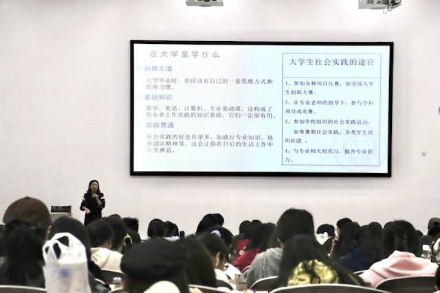 于璐书记分别从“认知我的大学”、“适应我的大学”和“我的大学能力”三个部分讲述。“大学是个新的起点,新的征程”,于书记对大学生在学习能力、沟通能力、管理能力、协调能力、心理调节能力、时间分配能力等多方面的培养提出建议并在学习和生活两个方面给予十条忠告,让我院学子充分认识到努力、自律、诚信、规划和成绩的重要性,也给有松懈想法的同学敲响警钟。