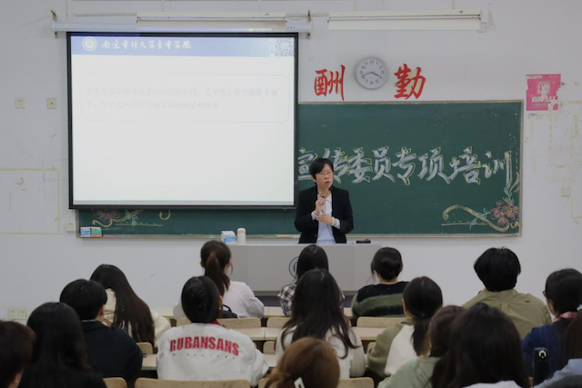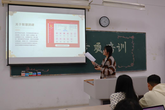 在组织宣传委员工作专项培训中,吴书记指出组宣委在宣传党的方针政策、加强大学生思想政治教育、组织开展各项活动、对外班级宣传等方面贡献突出。2021级国贸2班秦润泽同学总结分享了“班级文化,推优竞选,团建、志愿活动,主题班会”四个板块活动,建议同学们要统一思想,提高班级凝聚力;要培养同学实践能力,从而提高班级整体素质。