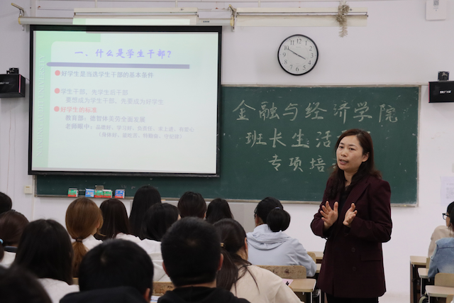 “火车跑得快、全靠车头带”,一个优秀的学生干部团队能够带动班级团结奋进,增强集体凝聚力。为塑造一支精干的班委团队,提高班委会的履职能力,发挥带头作用,深度参与年级管理和服务,更深入、更高质量地开展工作,williamhill英国中文分别于10月25、26日组织开展学生干部专题培训,由williamhill英国中文党总支书记于璐、副书记吴萍及williamhill英国中文各位辅导员主讲,并由往届优秀班干分享经验。