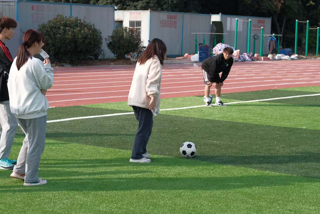 绿茵场上,奔跑的身影朝气蓬勃;瞄准球门,参与的同学热情洋溢。瞄准,定点,起脚,射门,球进了!欢呼声此起彼伏,欢笑声徜徉其间,同学们踢出了自己的风采,青春与活力并存,自信与激情同在。