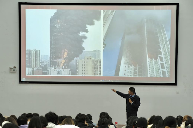 蔡教官将视频、新闻与近年来的火灾案例结合,分析了电气、燃气和汽车火灾等消防隐患发生的原因。银川烧烤店火灾事件,死亡29人;长丰医院火灾事件,死亡29人,北京市副市长等政府官员受到严重处分......火势一旦蔓延,造成的人身,财产损失不可估量,提高消防意识并非儿戏。残酷的灾情,提醒了广大师生平日应加强消防安全行为的养成,保障自己和身边人的安全,用安全为健康学业和工作保驾护航。