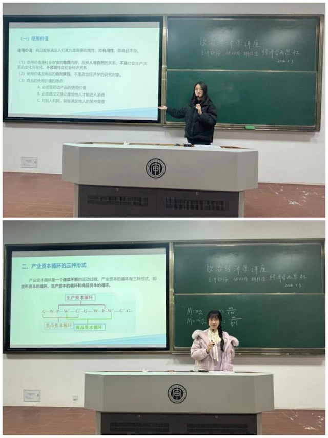 讲座中,张老师对《政治经济学》的核心概念进行详细阐述,并系统性讲述《政治经济学》基本理论。胡老师对《政治经济学》课程重点、难点知识进行深入剖析,并分享了如何运用政治经济学理论分析解决生活中的实际问题。