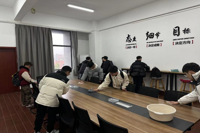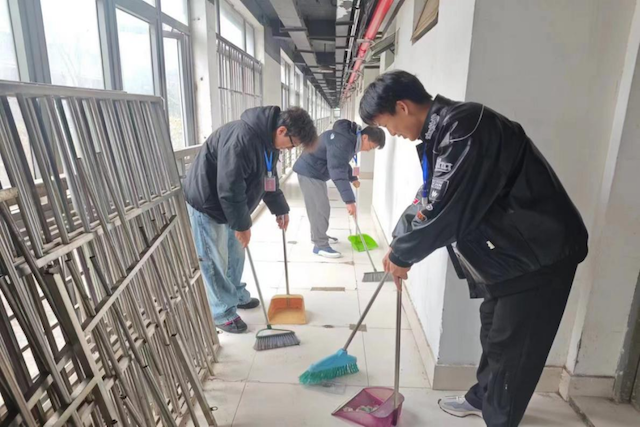 雷锋精神徜徉校园,青春朝气绘就新篇。宿管阿姨悉心呵护着离家的同学们,默默维护着楼栋的干净整洁,随时为同学们提供帮助。同学们为宿管阿姨送上精心制作的礼物,主动打扫宿舍公共区域,不仅表达了同学们真挚的感恩,更饱含深切情谊与美好祝愿。桃李芬芳至,乘“锋”悄入室。同学们走进教师办公区域,擦去桌上的灰尘,扫除地上的杂物,给老师们留下干净整洁的办公环境。一朝沐杏雨,一生念师恩,愿我们亲爱的老师桃李满天下,春晖遍四方!