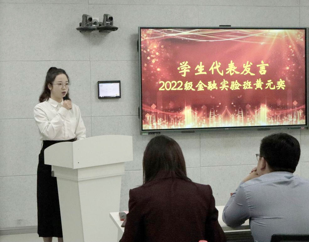 来自2022级金融实验班的黄元奕同学作为学生代表分享了自己在金融文化节活动中学到的知识。她表示,金融文化节给自己提供了展示自我、追逐梦想的平台,通过参加各项活动,能够不断提升自身的金融素养和实践能力。在今后的学习生活中,她也会积极关注金融行业,为金融文化的传承与发展贡献自己的青春力量。