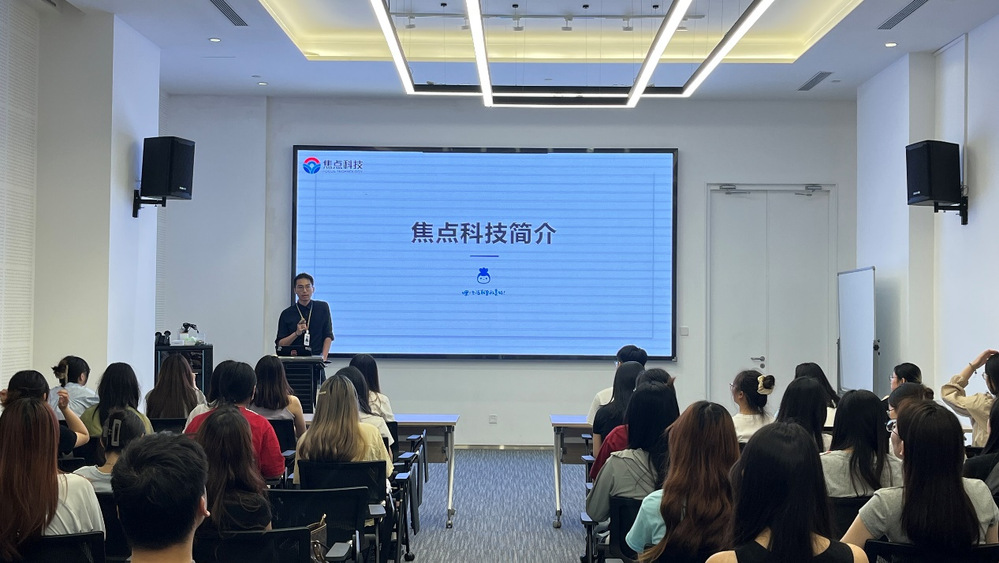 此外,焦点科技人力资源部门的招聘经理Bruce还向同学们介绍了企业主要岗位以及新员工的培训体系,并邀请直销业务部主管一起就学生对企业招聘、就业相关的问题一一做出解答。
