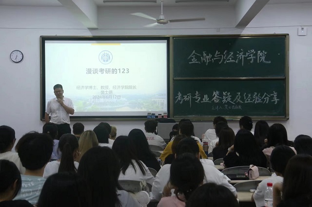 樊士德教授借用蔡元培先生“大学者,研究高深学问者也”的箴言鼓励备战考研的同学专心研究、潜心治学。他以“漫谈考研的123”为题,以生动形象的案例从为什么考研、考什么学校和专业、怎么准备三个问题出发,对大学生考研择校、时间规划、考研准备等多维度进行分享,内容丰富而实用。考研是一场专业知识的比拼,良好的学习习惯是考研成功的基石。樊教授建议同学们应注重培养自律、专注和坚持的学习品质,积极调用身边的学习资源,注重知识的积累与运用,同时保持积极的心态面对考研中挑战。
