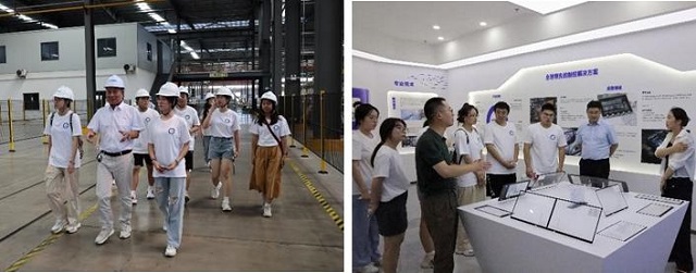 “只争朝夕”实践调研队实地参观学习了1+2+2产业体系中的典型代表企业,包括固德威电源科技(广德)有限公司、安徽科蓝特铝业有限公司、安徽威灏光电有限公司以内的多家企业,和一地六县产业合作区广德展示中心。工作人员的带领下,同学们也参观了部分生产车间,感受到了科技创新企业以严谨笃实的态度在广德经济开发区不断深耕,蓬勃发展的景象。