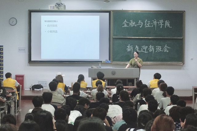 班会伊始,各班辅导员和辅导员助理分别向新同学们进行自我介绍,并对他们的到来表示热烈欢迎,这初步构建起了与新生沟通的桥梁。在充满期待与向往的大一时光中,无论是学习还是生活,他们都将竭力帮助新生更好地适应大学生活,使新同学在大学生活中遵规守纪,明确目标,茁壮成长。