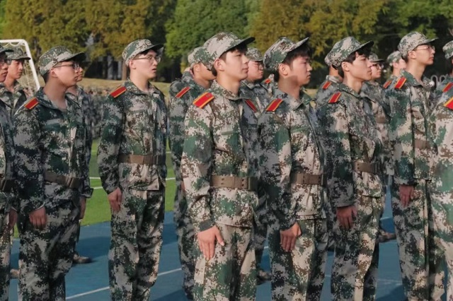 休息时间,教官还带领学生们拉歌。“听吧,新征程号角吹响,强军目标召唤在前方。”《强军战歌》的歌声一起,就使大家热血沸腾。炎炎烈日下,那一抹抹迷彩绿如波浪般,在广阔的操场上翻涌,每一面飘扬的旗帜都是青春活力的象征,每一曲悠扬的歌声都彰显着青年学子的豪情壮志,此刻,一幅展现青春风采的画卷正在我们眼前徐徐展开。