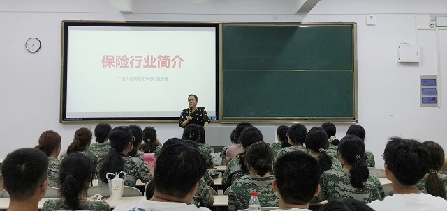 董经理从“保险的发展史是什么?”讲起,详细阐述保险从最初的简单互助形式逐渐形成严谨保障体系的过程及我国保险业的发展现状,引导学生聚焦热点保险话题,讲解保险知识,从国家层面分享保险未来发展蓝图。董经理认为,保险业与我国宏观经济高度共振、共生共荣,是经济的减震器和社会的稳定器,随着我国宏观经济高质量发展提速,保险业从高增长时代迈向高质量发展阶段,给保险专业的学生带来机遇和挑战。