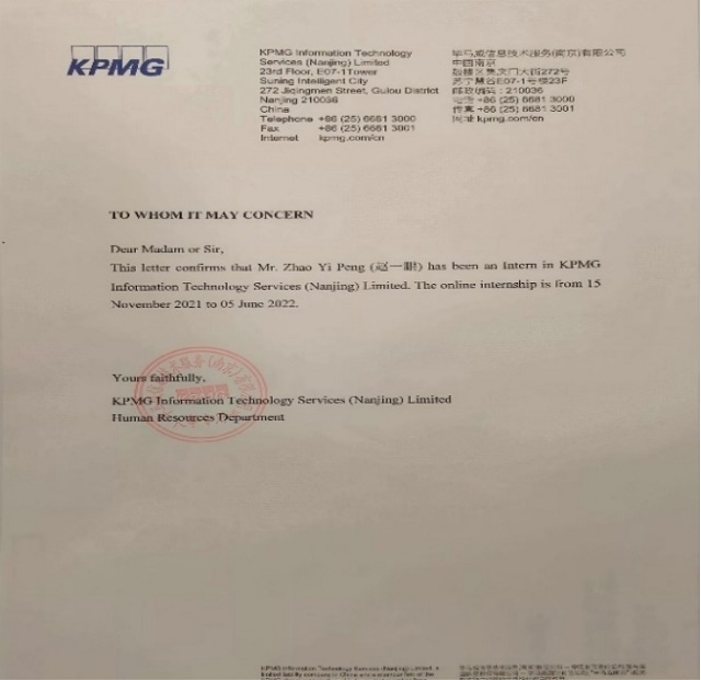 社会实践是行走的课堂,田芮积极参加社会实践,在社会实践中锻炼真知灼见。2022年1月至6月期间,她在毕马威信息技术服务有限公司开展6个月的线上实习,负责网络和服务器备份监控、数据处理、日常检查和报告编制等相关工作。在实习期间,她谦虚好学,主动向前辈请教,不断充实和提高自己,适应岗位需求。2023年寒假期间,她在中国银行开展为期一个月的社会实践。她将金融理论与实践紧密结合,在实践中不断丰富金融理论,提升专业技能。作为大堂经理助理,她熟练掌握STM和ATM机的使用以及信用卡办理等基本业务。这段经历丰富了她对银行工作的认知,也为未来职业生涯规划打下了坚实的基础。