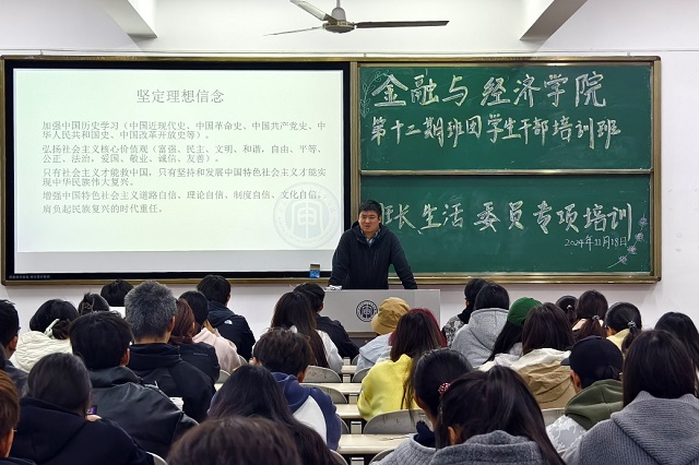 培训会上,叶城洁老师对班长和生活委员的定位与职责、必备素质与能力、日常管理与服务技巧等进行详细讲解。他指出,班长是班级的领头羊,在辅导员老师指导下全面主持班级日常工作,班长需要在同学中建立积极有效的沟通机制,充分发挥师生之间的桥梁纽带作用,增强班级凝聚力,打造学风优良、团结进取的班集体。生活委员是班级稳定的中坚力量,在管理寝室内务、维护宿舍秩序、保障学生日常生活权益等方面发挥着重要作用。生活委员要时刻关心同学们的日常生活,为同学们营造一个温馨和谐的寝室环境。叶老师要求各位参会的班长和生活委员,作为学生干部要以身作则、率先垂范,严格要求自己;要提高认识,提升能力,增强为学生服务的水平;要上下联动、积极沟通,协同配合发力,共同做好班级和学院各项工作。