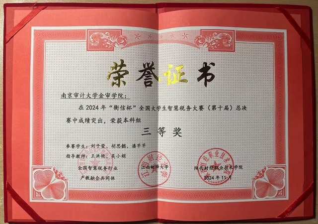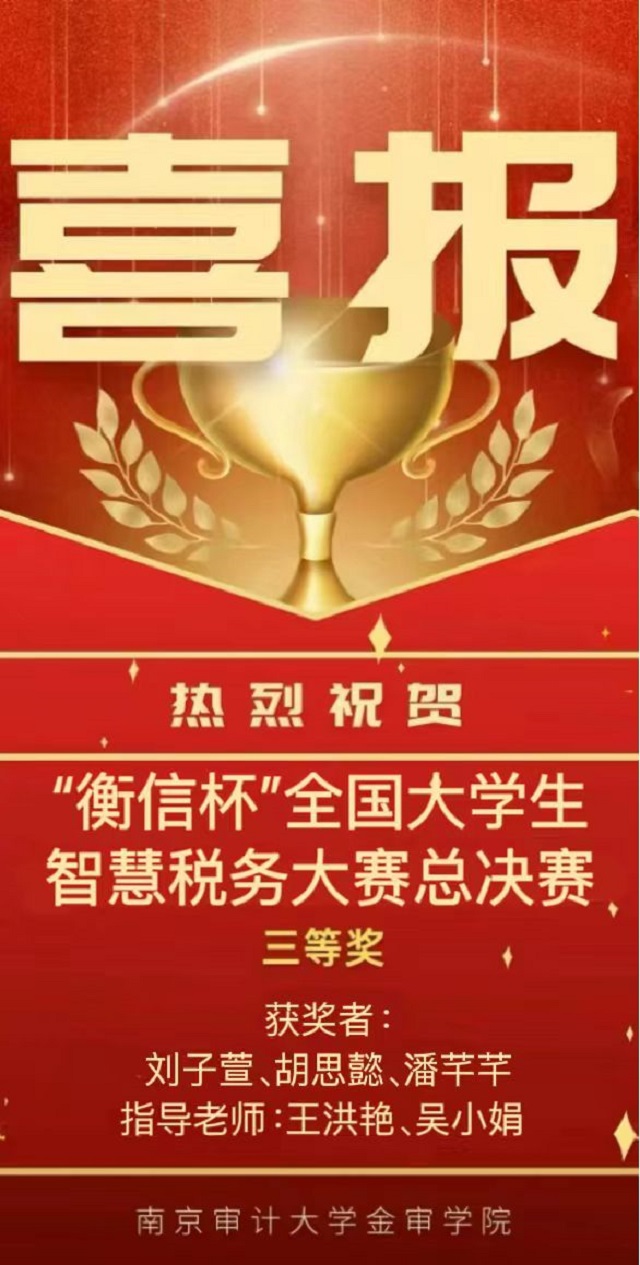 近日,备受瞩目的国家级A类赛事——第十届“衡信杯”全国大学生智慧税务大赛总决赛圆满落下帷幕。我校派出的代表队经过多轮激烈角逐,荣获本科组全国三等奖,展现出了扎实的专业基础和团队协作能力。