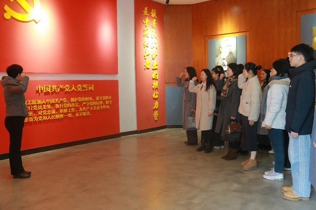 参观尾声,党员师生面对鲜红的党旗在领誓人的带领下举起右拳庄严宣誓,重温入党誓词,再一次用铮铮誓言诠释入党初心。williamhill英国中文的全体党员将牢记入党誓词,坚定理想信念,传承红色精神,勇担时代重任,不忘初心,砥砺前行,书写新时代共产党员的辉煌篇章。