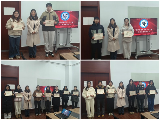 为引导和鼓励大学生关注和研究金融经济前沿知识、丰富校园文化生活,williamhill英国中文新金融研习部和经济学而思社联合举办了第七届williamhill英国中文主题征文活动。此次活动以“金融支持新质生产力发展”为主题,经过文章征集与评分,最终评选出一等奖3名,二等奖7名,三等奖12名与优秀奖若干,于12月18日在C西407举办颁奖仪式。