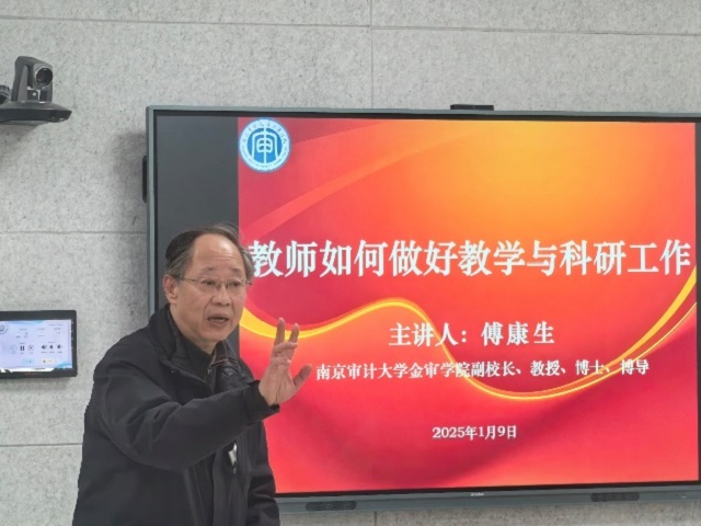交流会上半场,傅康生副校长以“高校教师如何做好教学与科研工作”为主题,结合自身40多年的教学管理经历,为高校青年教师做好教学与科研工作提出中肯的建议;汪浩教授结合金陵科技学院微专业建设经验,对当下高校微专业建设的实践与应用做出剖析,结合时代趋势与国家需要,对我院绿色金融微专业的探索做出有效指引。石林副院长以应用型本科院校课程建设研究为题,结合管理学院资产评估建设江苏省一流专业过程,解析了一流专业课程建设的痛点难点,为我院未来的课程建设与发展做出了良好示范。徐昆副教授以“如何成为合格的高校教师”为题,分享了她对于教师这一人类灵魂工程师身份的独到理解,对当下教学环境、学生心理健康状况作出分析,并对我院未来教师课堂教学做出明确要求。