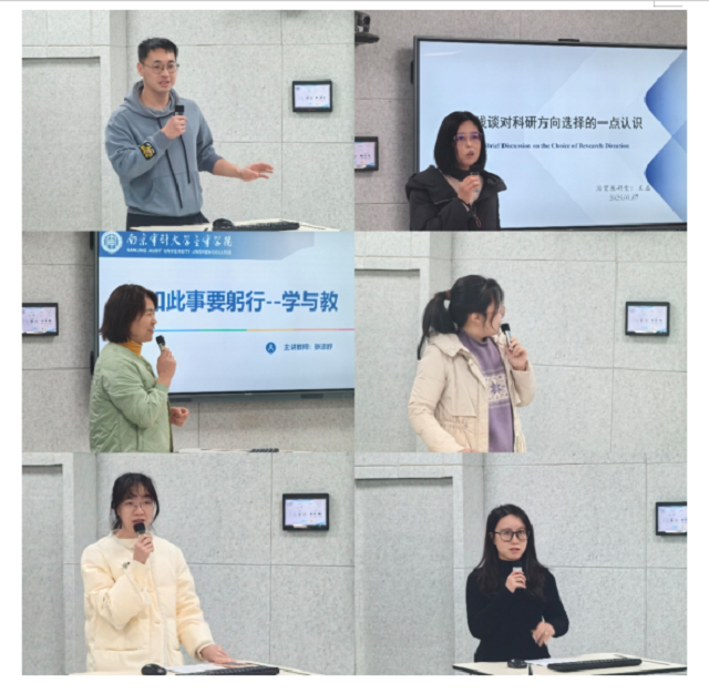 交流会的下半场,学院青年教师代表交流发言。青年教师林仕伟博士、王磊老师对科研方向选择、科研方法进行经验分享;张添舒、徐雯雯、胡梓滢三位老师谈“学与教”的体会;李颖老师的学工管理措施和经验分享。青年教师代表们结合入职以来的自身体验,生动阐述了对教育教学、科研、学生管理工作的相关理解,并以能成为一名合格的高校教师而自豪。