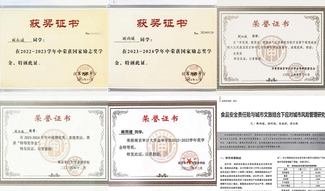 从苏北小城到金陵学府,阚雨媛以奋斗为笔,以梦想为墨,在青春的答卷上镌刻璀璨篇章。她以3.7242的绩点稳居专业魁首,五度蝉联专业第一,90分以上科目达27门,连续两年斩获国家励志奖学金、校特等奖学金。她不仅是课堂上的求知者,更是实践领域的探索者——带领团队摘得“智慧银行赛道”区域赛三等奖,主持校级大创项目一项,于省级期刊发表学术论文,将理论淬炼为创新的火花。在知识的海洋中,她以勤勉为舟,以志向为帆,于学术星河中点亮属于自己的光芒。