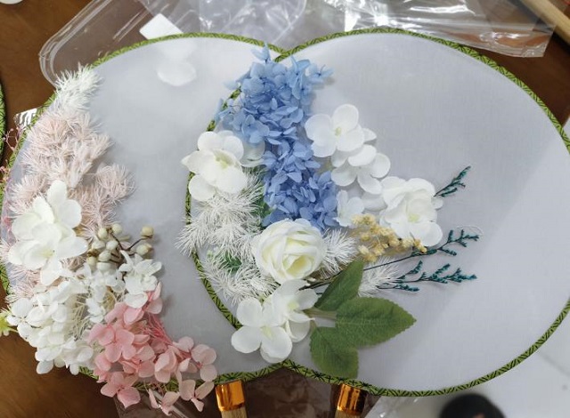 活动现场精心布置了干花材料、空白团扇及制作工具。活动伊始,主持人郝悦存通过“破冰游戏”引入心理学知识讲解,阐释手工创作与心理健康的内在关联。胡宗康老师强调:“艺术疗愈作为心理干预的创新形式,能有效激活学生的创造潜能,在具象化创作过程中实现情绪外化与压力转化。”随后,30余名参与学生在主持团队指导下,通过构图设计、材料拼贴、色彩搭配等环节,将永生花材转化为独具匠心的艺术品。