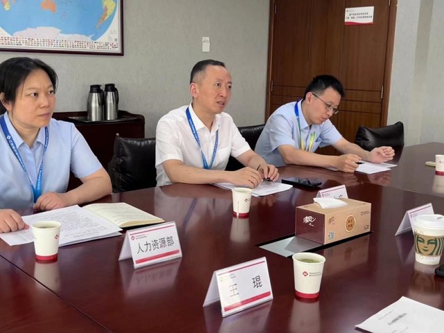 调研中,新沂农商银行钟吾支行行长周大庆、人力资源部总监王宁等人详细介绍了人才结构现状。目前该行在职员工中,南京审计大学毕业生共17人,其中金审学院的毕业生就有12人,其中4名已经顺利晋升为中层管理干部,还有3人担任业务主管。周大庆行长对近年来招收的金审学院学生给予了高度评价,并表示未来将加大金审学院毕业生招聘力度。