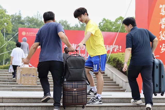 行囊繁重,艳阳高照,志愿者们往返穿梭在偌大的校园里,总能给新生们最及时的回应和最浓烈的热情。志愿者们认真坚守自己的岗位,确保每位新生安全有序地抵达对应的宿舍楼,将内心的关怀化为热忱的行动,传达至新生的心里。
