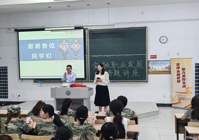 9月11日晚,我院特邀江苏银行栖霞分行副行长马志鑫与小企业部副经理刘奇,开展“你的未来,‘银’接而来”金融职业发展专题讲座并进行金融防诈宣传。2025级金融学专业全体学生及校友代表参会,现场互动热烈。