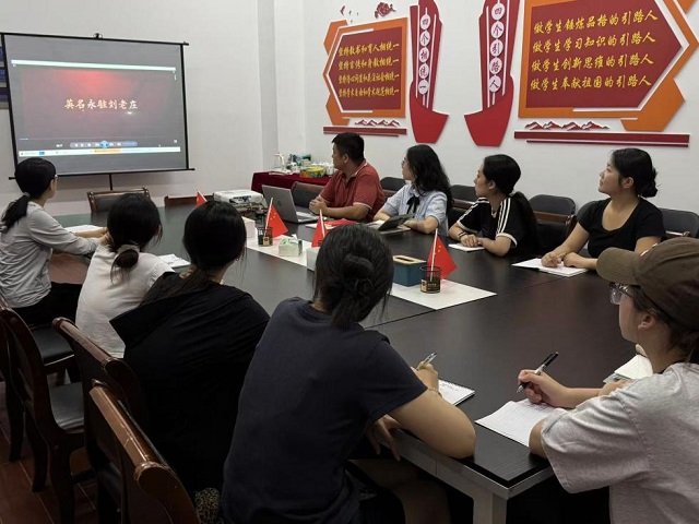 本次会议以“传承红色基因,锤炼党性修养” 为核心,将理论学习与实践部署紧密结合。为贯彻“三会一课”学习要求,叶城洁老师带领全体预备党员深入研读《八秩荣光——江苏抗日根据地共产党人》相关篇目,重点学习刘老庄根据地精神。他结合史料细致讲解了刘老庄战斗中共产党人挺身而出、舍生取义的英雄事迹,强调新时代青年党员要从革命精神中汲取力量,牢记初心使命。参会党员认真记录笔记,现场学习氛围浓厚。