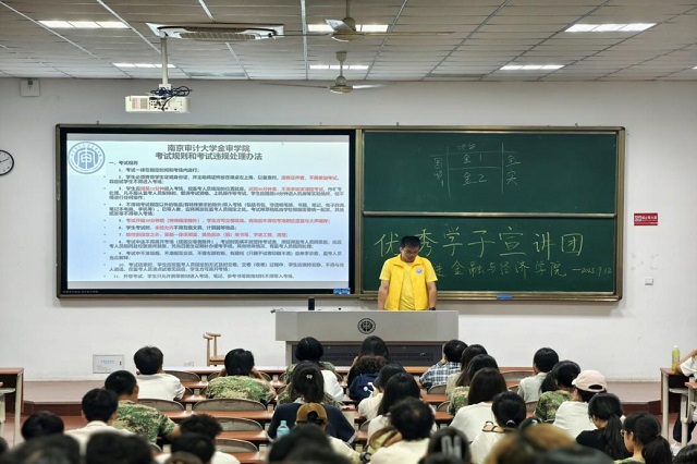 优秀学子宣讲团环节,23级金融学专业何梦涵从高中与大学学习差异切入,分享目标制定、时间规划、笔记方法及资源利用技巧,建议借助知网、TED等提升自我,还给出“刷真题、勤背书、多动笔”的考前建议。22级税收学专业张天恺强调第一课堂专业知识与第二课堂能力培养并重,鼓励学生多参加各项竞赛,积极参加学生社团、团学组织、志愿服务锻炼和提升自身能力。