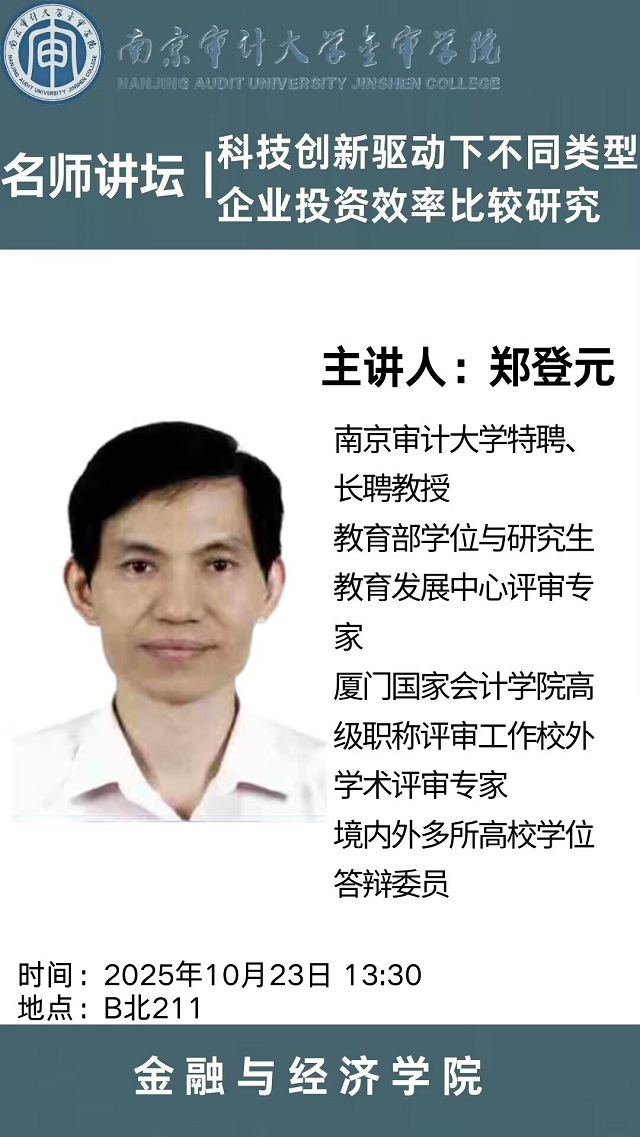 讲座预告|科技创新驱动下不同类型企业投资效率比较研究