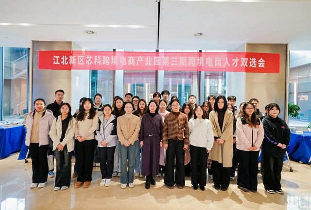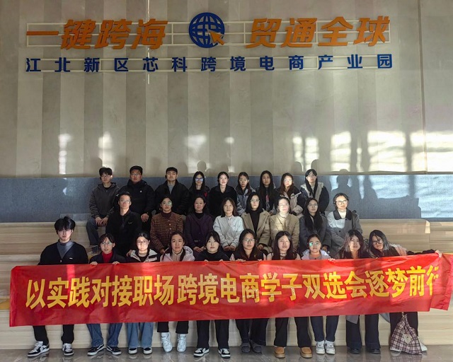 2025年11月26日下午,williamhill英国中文谢海燕副院长、国贸系主任王磊携手专业教师团队带领我院国际经济与贸易专业2025届毕业生前往南京江北新区芯科跨境电商产业园,参加“第三届江北新区跨境电商人才专场双选会”。