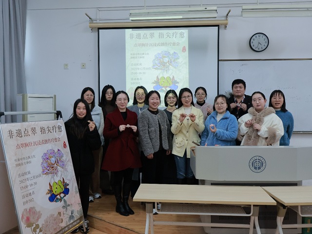 活动的最后,一场“非遗点翠,指间疗愈”手工体验,让老师们在传统文化的浸润中感受专注的力量。当一件件色彩绚丽、独具匠心的点翠作品逐渐成型时,老师们脸上满是成就感——在感受非遗文化魅力的同时,也通过沉浸式创作,体验到了“心流”带来的专注与满足,实现了心灵的深度疗愈。