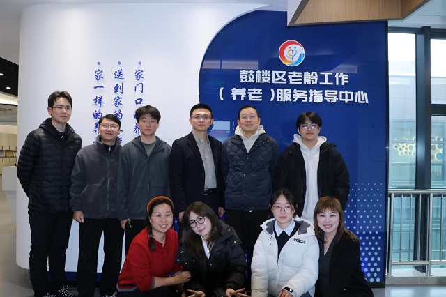 调研伊始,师生们在江苏宁嘉律师事务所主任蒋文律师、善家银龄南京合伙人陈沛绮女士的陪同下,先后参观了“养老服务互助时间平台”与“银龄驿站”服务阵地。在宁海路街道党群服务中心,大家详细了解了鼓楼区民政局牵头搭建的养老顾问直播中心配套设施,直观感受“互联网+养老”模式如何打破时空限制,为社区老人提供便捷高效的服务支持。
